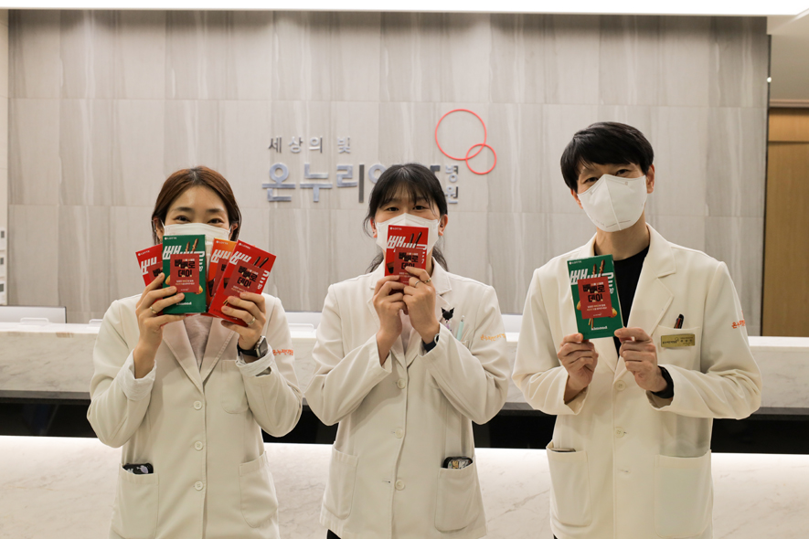사랑을 전하는 11월 11일 빼빼로 데이! 온누리안과병원 임직원들을 위한 빼빼로 나눔행사 ![]() 온누리안과병원은 11월 11일 빼빼로데이를 맞아 임직원들이 소통하고 서로를 격려하는 ‘빼빼로 나눔 행사’를 진행했습니다. 매년 11월에는 모든 원장님과 검안실, 간호부, 병동, 수술실 등 진료와 운영의 최전선에서 환자분들을 위해 헌신하며 병원을 빛내는 임직원들께 감사의 마음을 담은 선물을 꾸준히 전해왔습니다. ![]() 온누리는 내원객 뿐만 아니라 병원 구성원 모두를 위한 다채로운 복지와 원내 이벤트를 진행하고 있습니다. 빼빼로데이 선물, 달콤한 초콜릿으로 마음을 전하는 발렌타인데이, 수능을 앞둔 자녀를 둔 직원을 위한 응원 선물 증정과 ![]() 비타민 나눔 이벤트는 이제 온누리 고유의 조직 문화로 자리잡았습니다. 함께 일하며 일상에서 활력을 얻고, 자부심으로 ![]() 환자분들에게 최선을 다할 수 있도록 구성원 모두가 하나가 되겠습니다. |