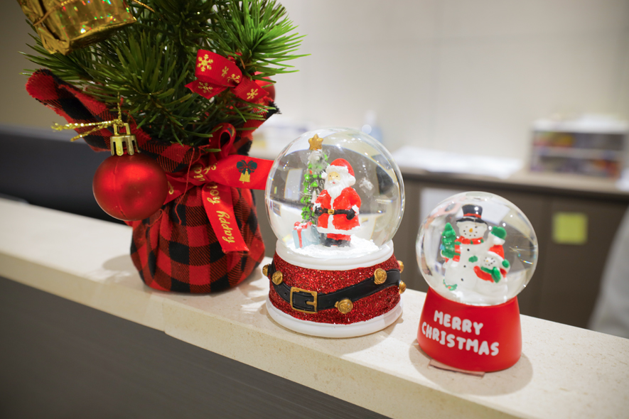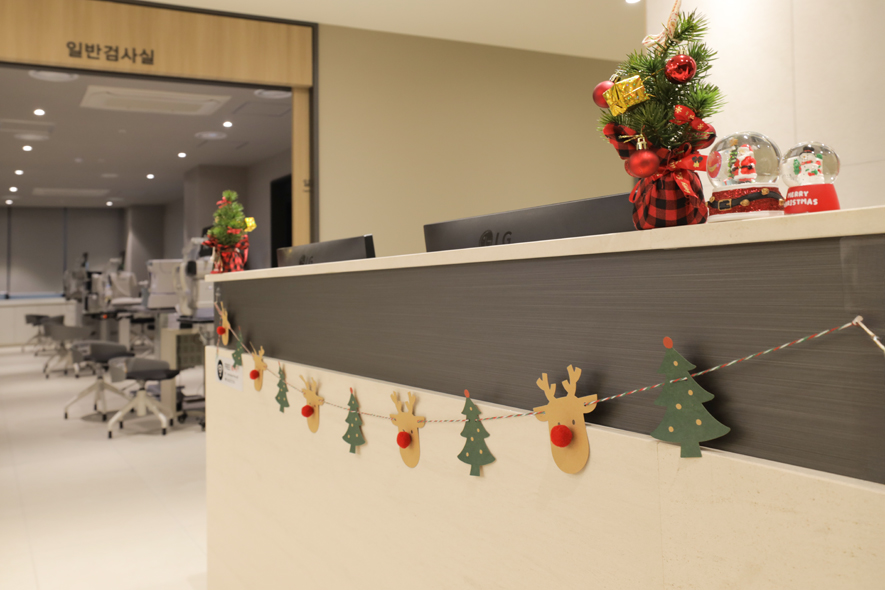 또한 각 접수 데스크에는 루돌프 가랜드와 아기자기한 크리스마스 소품들이