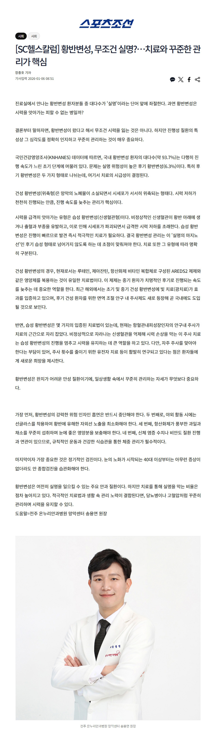 황반변성, 무조건 실명...치료와 꾸준한 관리가 핵심_송용연 원장