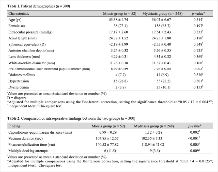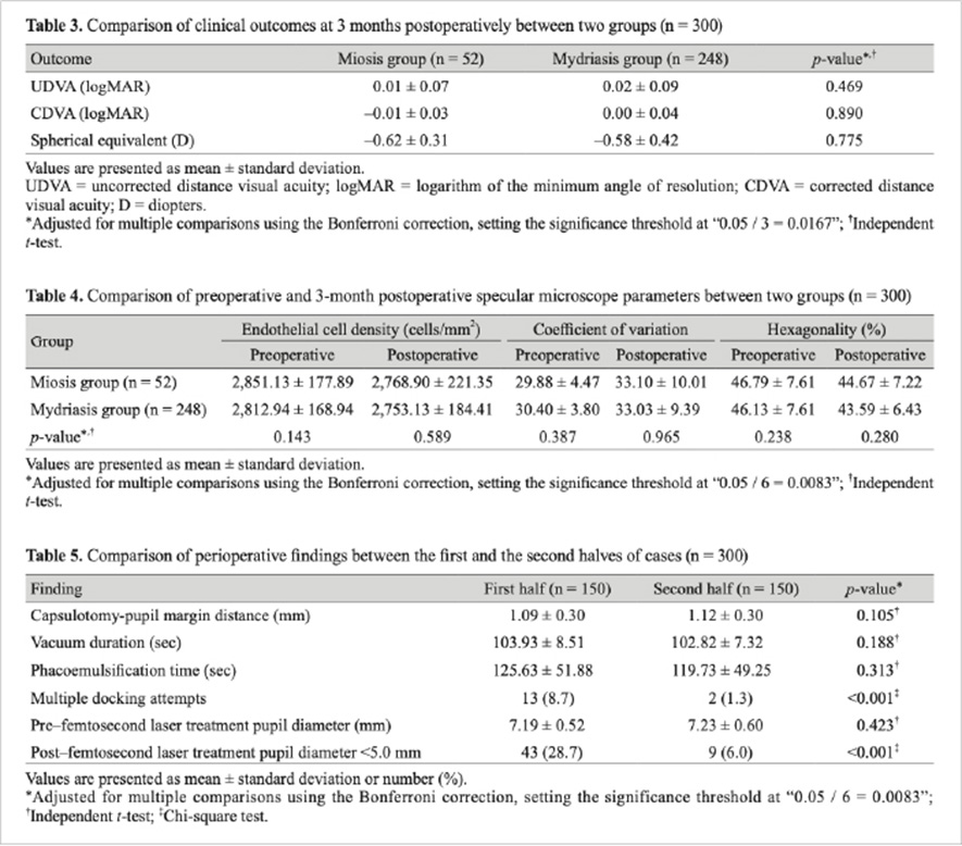 본 연구는 레이저 백내장 수술 중 비교적 흔하게 발생하는 축동이라는 임상 변수를 체계적으로 분석하여,